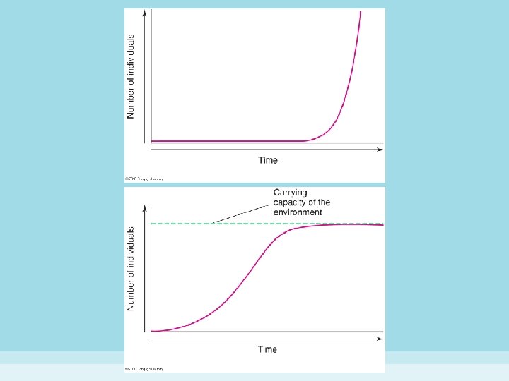 Population Growth • Many ways a population can increase in size, depending on the carrying capacity of the environment – exponential/logarithmic growth – logistic growth