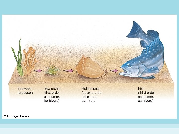 Seaweed (producer) Sea urchin (first-order consumer, herbivore) Helmet snail (second-order consumer, carnivore) Fish (third-order consumer, carnivore) Stepped Art Fig. 2 -17, p. 33