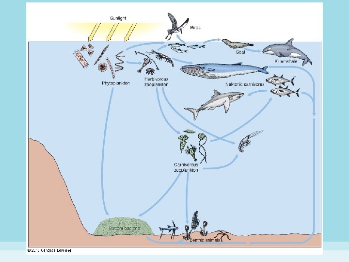 Key Concepts • Marine ecosystems consist of interacting communities and their physical environments. • Most populations initially grow at an exponential rate, but as they approach the carrying capacity of the environment, the growth rate levels off. • Energy in ecosystems flows from producers to and through consumers.