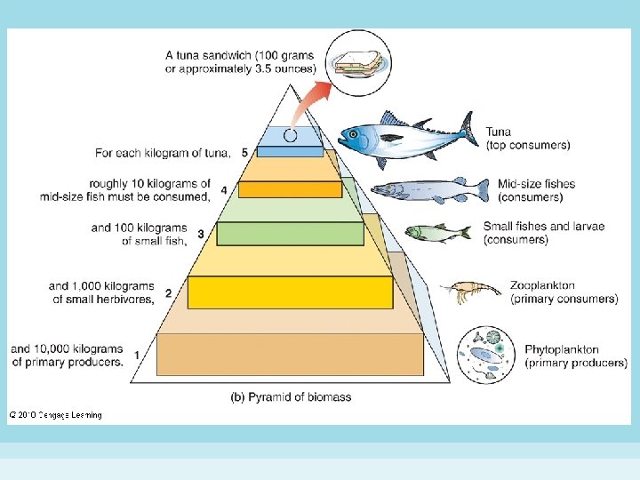 Ecosystems: Basic Units of the Biosphere • Trophic levels – number of levels is limited because only a fraction of the energy at one level passes to the next level – ecological efficiency • ten percent rule – trophic pyramids • as energy passed on decreases, so does the number of organisms that can be supported
