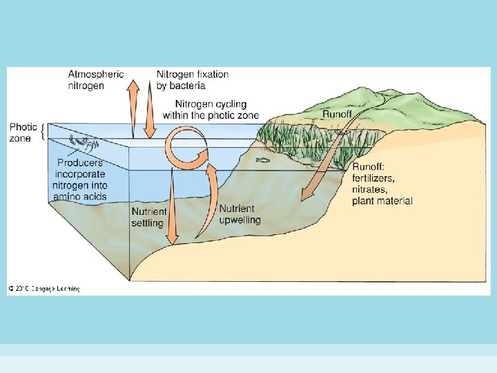 Biogeochemical Cycles • Nitrogen cycle – producers use nitrogen to synthesize protein forming amino acids – bacteria recycle nitrogen from wastes and decomposing, dead organisms – fixation of atmospheric nitrogen by microorganisms
