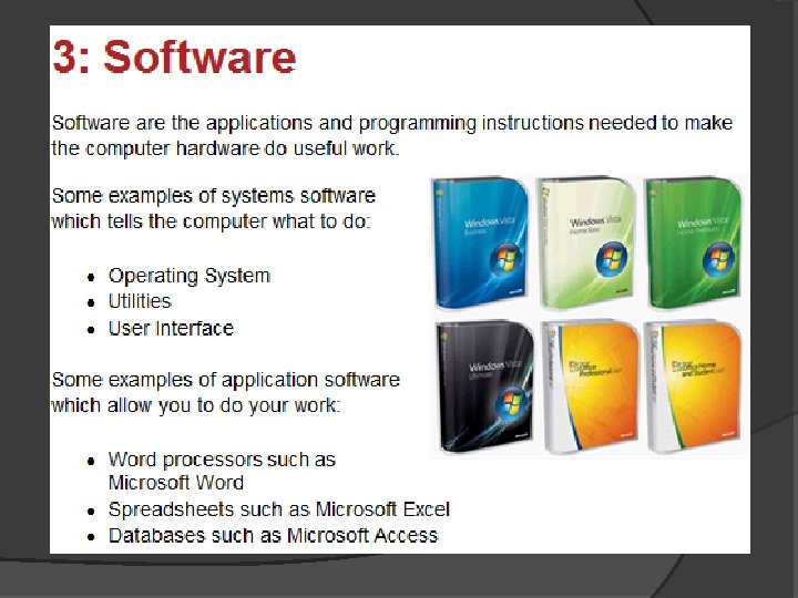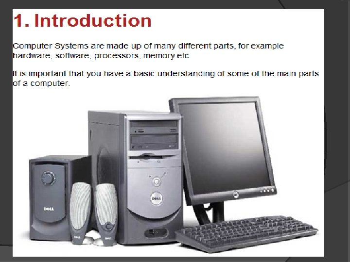 Speakers / Headphones � There is usually a small speaker within the computer however to increase the volume and quality of the sound we plug in external speakers which allow us to hear the music better. � Headphones can be plugged into almost all computers and they enable you to listen to your music without disturbing others.