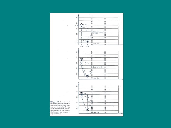 Distance Traveled and Displacement • Football example: – Resultant displacement can be resolved into components in the x-direction (across the field) and y-direction (down the field toward the goal) – In this case the y-displacement of the running back is the measure of importance – We can find the y-displacement by subtracting his initial position from his final position