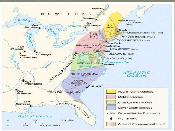 THE ENGLISH COLONIES � English colonies described as “Thirteen schools of government” � Thirteen colonies were created separately, over 125 years • Beginning with Jamestown, VA in 1607 up to Savannah, GA in 1733 � Each colony was borne out of a particular set of circumstances • Each colony was established on the basis of a CHARTER (written grant of authority from the king)