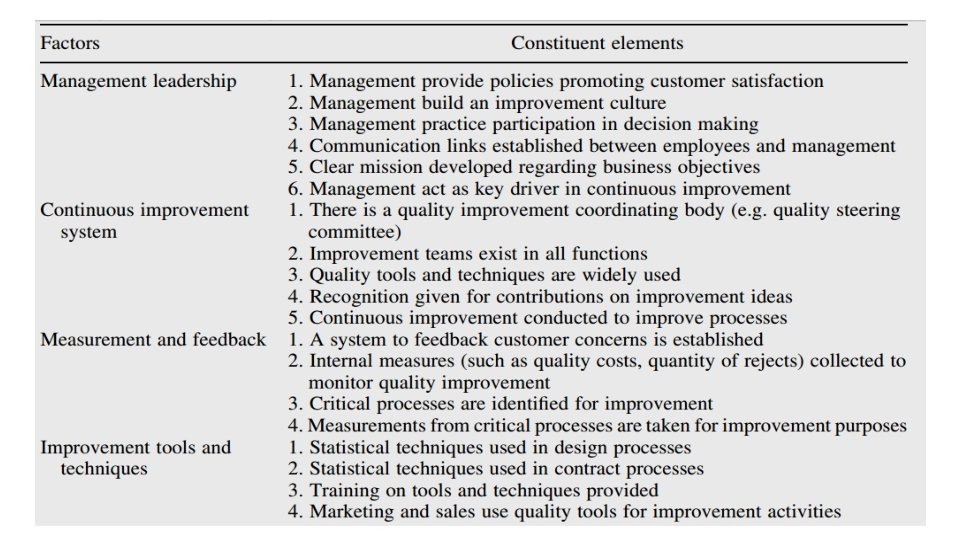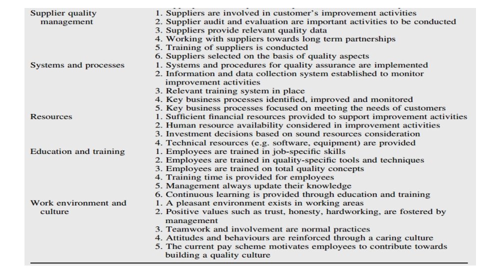 Three key elements of quality • The three quality elements which influence a product or serviceability to satisfy customer needs are • Quality of Design: A product needs to be designed to satisfy customer needs. • Quality of Conformance: Closeness with which the finished product or supplied service matches the specifications of the original design. • Quality of Reliability: ability of the finished product to provide trouble free performance in the field, over an acceptable time period.