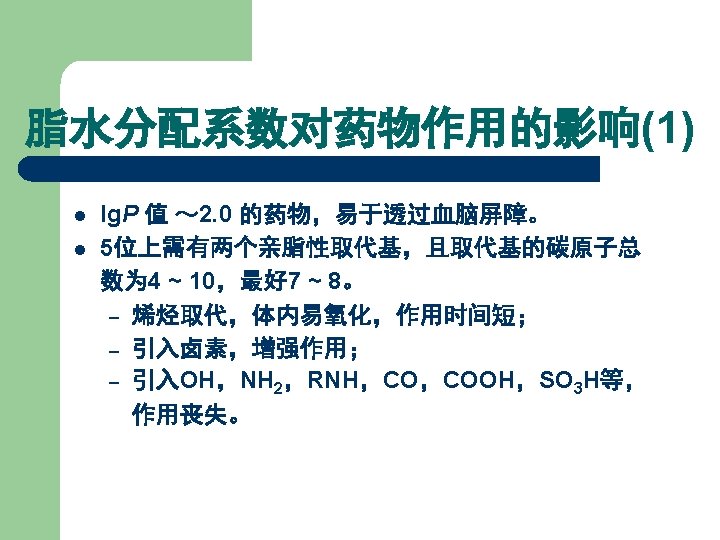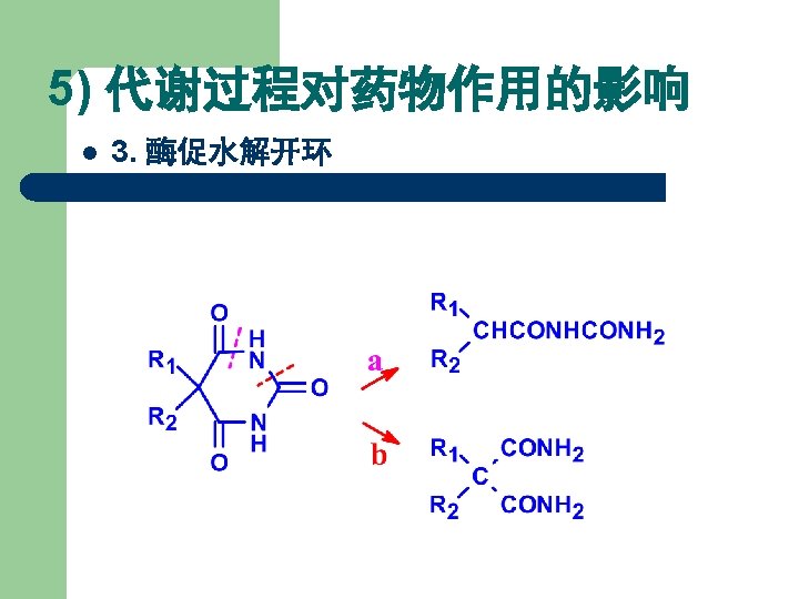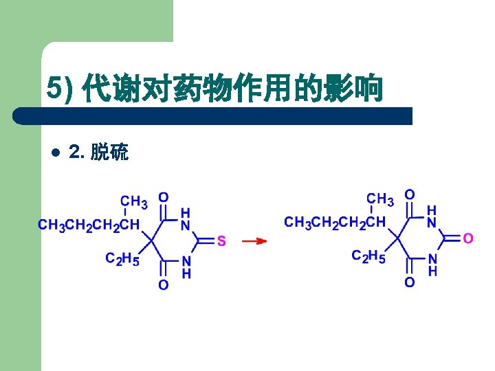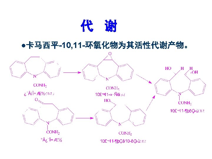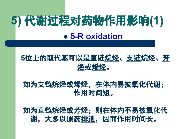 体内代谢过程对药效的影响 Metabolism in vivo 1)5 -R oxidation; 2)2 -S desulfidation; 3)Lactam hydrolysis; 4)N-demethylation. 结果:脂溶性下降, 脑内浓度降低而失活。