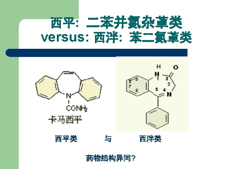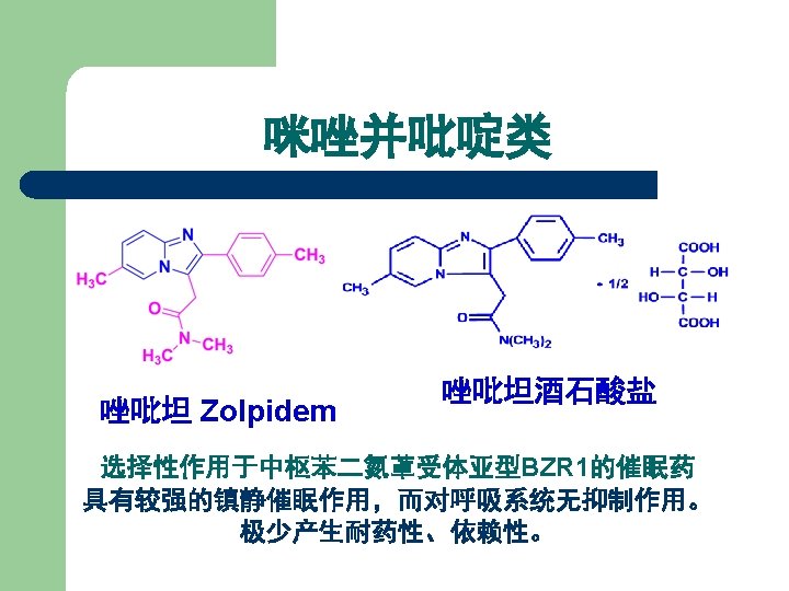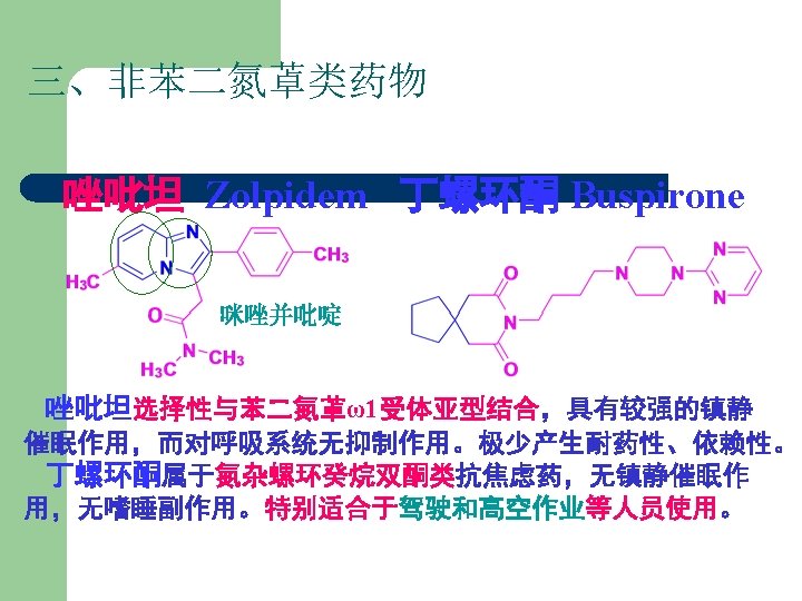 丁螺环酮(Buspirone) l l 【Structure Features】 Buspirone is quite different from benzodiazepines and phenothiazines.
