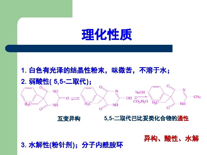 巴比妥类药物的互变异构 内酰胺 Lactam Barbituric acid Monolactim 内酰亚胺 Lactim Dilactim Trilactim
