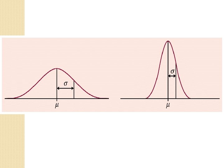 Normal Distribution Notation N(μ, σ) ◦ Ex: distribution of women’s heights N(64. 5, 2. 5) Give good descriptions for some distributions of real data ◦ Ex: SAT scores Give good approximations to the results of many kinds of chance outcomes ◦ Ex: tossing a coin Statistical inference procedures are based on normal distributions