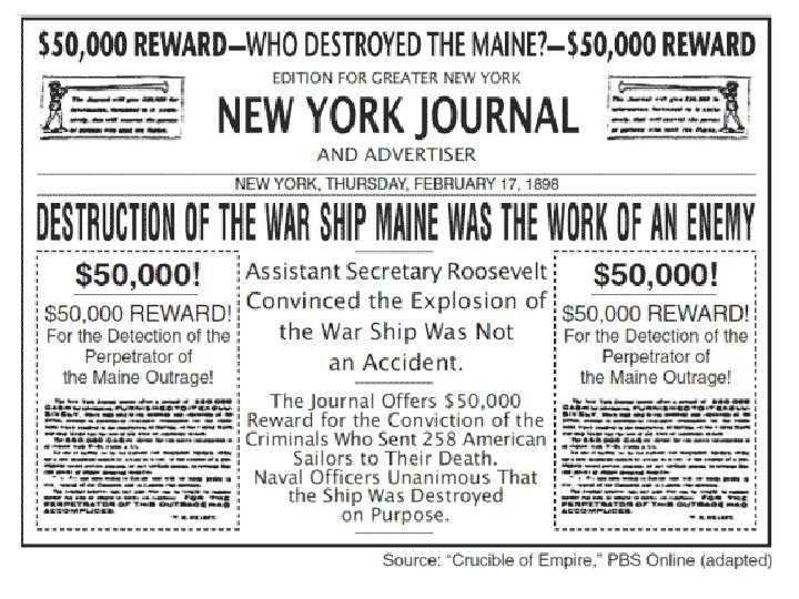 Soooo… Fun Test IV 1. Please describe Yellow Jopurnalism and give an example. 2. What was The Maine and how did it cause the Spanish American War?