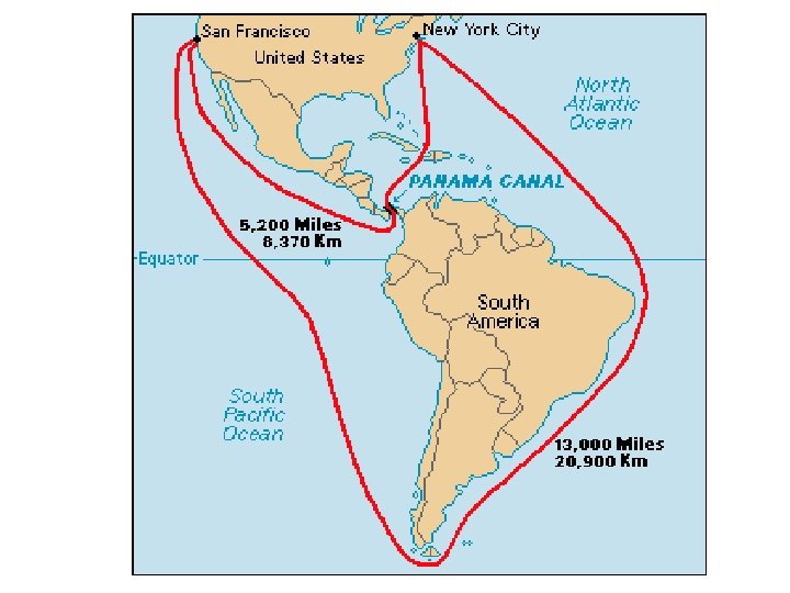 The United States and Latin America • Panama Canal – The Isthmus of Panama was chosen because it was only 50 miles wide – perfect location to shorten trips from the West Coast to the East Coast