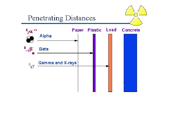 Measuring Radioactivity • One can use a device like this Geiger counter to measure the amount of activity present in a radioactive sample. • The ionizing radiation creates ions, which conduct a current that is detected by the instrument.