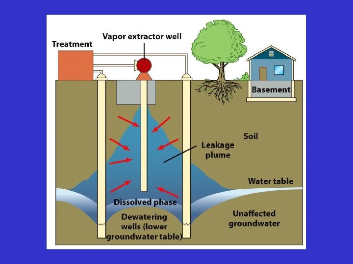 Principles of Groundwater Pollution: An Example • Pollution leaking from buried gasoline tanks from service stations – Wide spread problem – Many thousands of old tanks removed and surrounding groundwater and soil treated • Disposal of soil, vapor extraction of water and use of microorganisms (bioremediation)