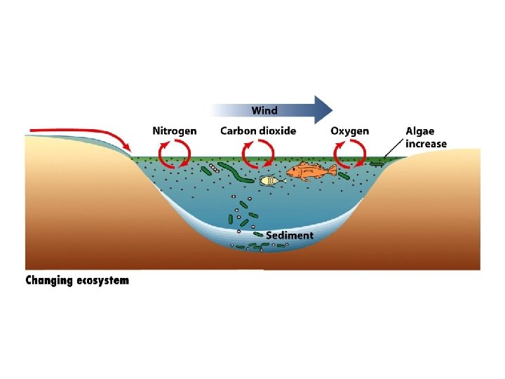 Nutrients • Eutrophication – The process by which a body of water develops a high concentration of nutrients – Phophorus or nitrogen • Cultural Eutrophication – When eutrophication is accelerated by human processes that add nutrients to a body of water • Fertilizers, detergents, sewage treatment plants