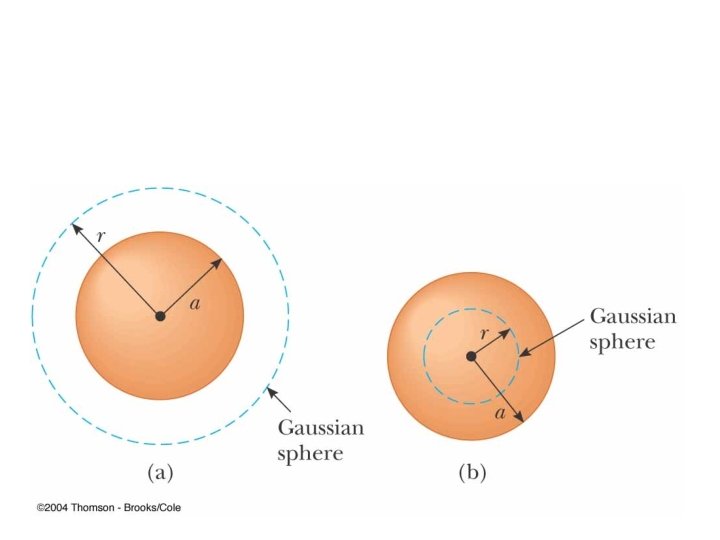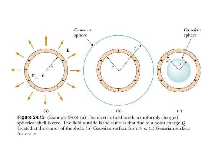• The field outside is the same as that due to a point charge Q located at the center of the shell Fig 24 -13 b, p. 748