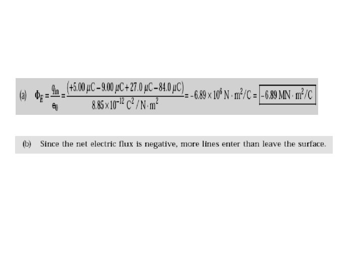 Section 24. 2 Gauss’s Law Q 15: The following charges are located inside a submarine: 5, -9, 27 and -84 µC (a) Calculate the net electric flux through the submarine. (b) Is the number of electric field lines leaving the submarine greater than, equal to, or less than the number entering it?