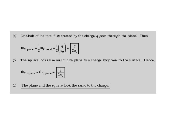 Q 11: (a) A point charge q is located a distance d from an infinite plane. Determine the electric flux through the plane due to the point charge. (b) A point charge q is located a very small distance from the center of a very large square on the line perpendicular to the square and going through its center. Determine the approximate electric flux through the square due to the point charge. (c) Explain why the answers to parts (a) and (b) are identical.