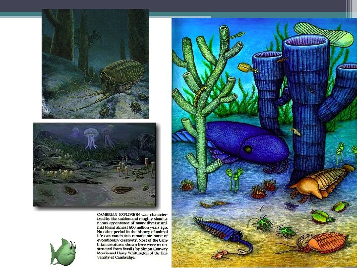 Cambrian explosion • Diversification of Animals ▫ within 10– 20 million years most of the major phyla of animals appear in fossil record 543 mya