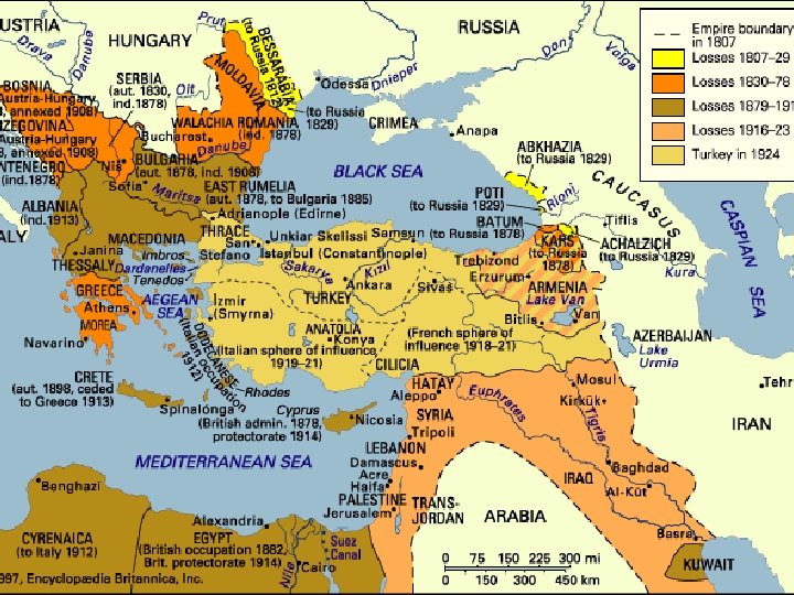 From Empire (Ottoman) to Nation (Turkey) Ottomans weakened by internal strife Succession of weak rulers (sultans) Power struggles (Janissaries, officials, elite factions) Corrupt provincial officials and ayan Position of artisans declines as a western goods flood the markets (wide scale urban riots) Armies lack important resources Foreign empires (ex—Russian) make grabs at outlying territory