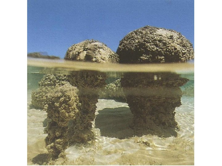 Evolution of Oxygen • Photosynthesis probably evolved prior to photolysis. • Cyanobacteria are the only living prokaryotic, oxygen liberating autotrophs. • Oxygen liberating autotrophs evolved after. • Free oxygen dissolved into surrounding waters and reacted with dissolved iron producing iron oxides.