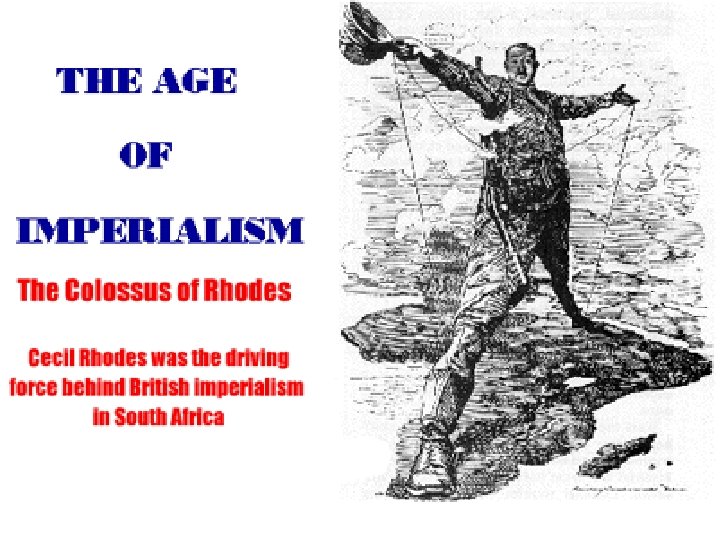 • C. Southern Africa • Southern Africa had long been attractive to European settlers because of its good pastures and farmland its mineral wealth. The discovery of diamonds at Kimberley in 1868 attracted European prospectors and Africans; it also set off the process by which the British Cape Colony expanded, annexing Kimberley and defeating the Xhosa and the Zulu. • Cecil Rhodes used his British South Africa Company to take over land in central Africa. • British control over South Africa was consolidated when Britain defeated the Afrikaaners in the South African War (1899– 1902). In 1910 the European settlers created the Union of South Africa, in which the Afrikaaners emerged as the ruling element in a government that assigned Africans to reservations and established a system of racial segregation.