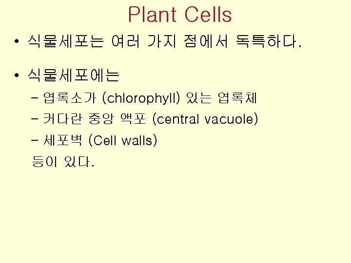 • 유조직 세포 (Parenchyma cells) – 대부분의 식물에서 가장 흔한 종류의 세포 – 음식 저장, 광합성 등 다양한 기능을 수행한다. (food storage and photosynthesis) Primary wall (thin) (a) Parenchyma cell Figure 28. 8 a