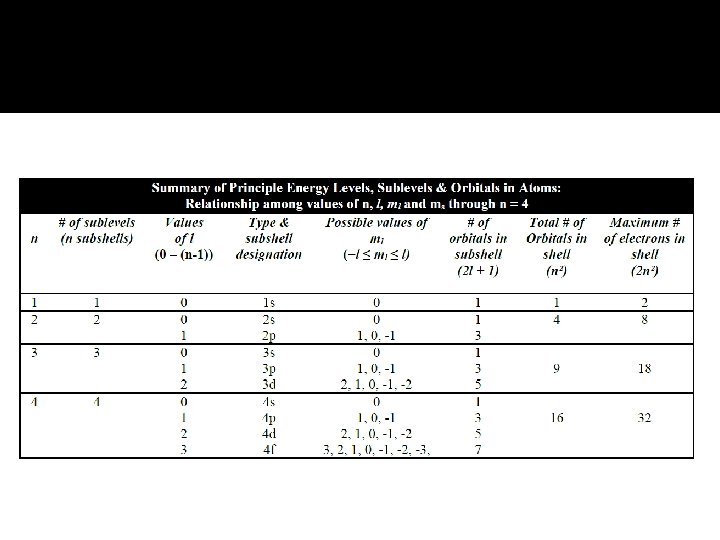 Quantum Mechanical Model � The quantum mechanical model determines the allowed energies and electron can have and how likely it is to find the electron in various locations around the nucleus of an atom. � Erwin Schrödinger (1887 -1961) in 1926 developed a mathematical treatment into which both the wave and particle nature of matter could be incorporated. This is known as quantum mechanics (wave mechanics). � An orbital is described by a set of three quantum numbers.