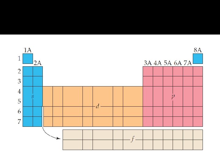 Periodic Table � The periodic table is divided into four blocks based on the filling order of orbitals. Different blocks on the periodic table (shaded in different colors in this chart) correspond to different types of orbitals. The s block and the p block elements are the main group elements.