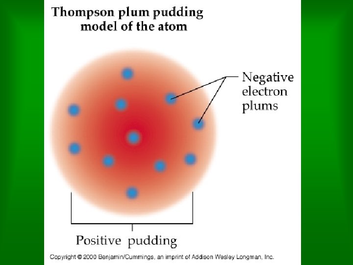 Thomson’s Model • This lead directly to the idea of electrons and was a major advancement in atomic theory. • Sometimes this theory is called “Raisins in a Plum Pudding. ”