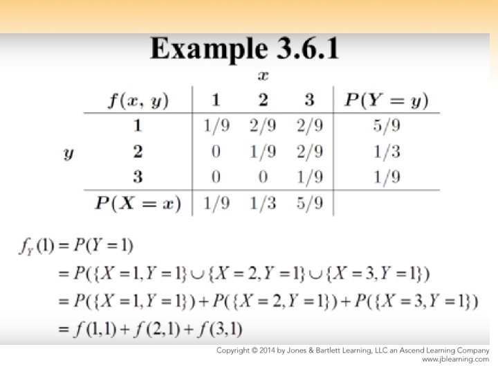Example 3. 6. 1 • f(1, 1)=P(X=1, Y=1)=P(M 1, M 1)=1/9 • f(2, 1)=