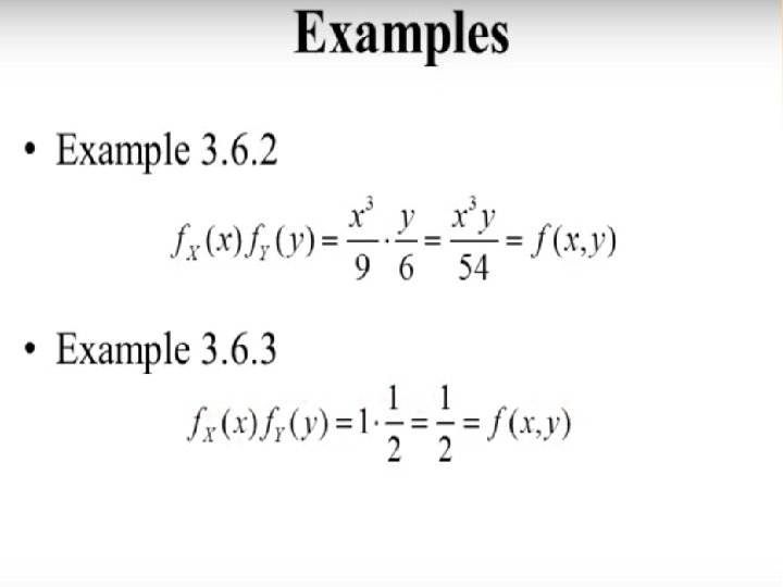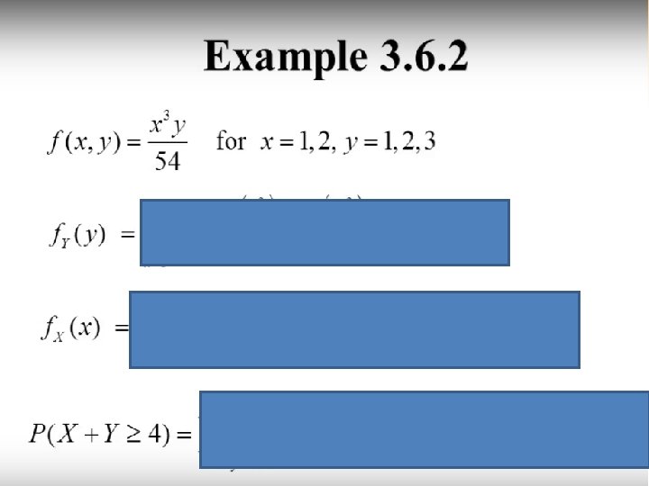 Example 3. 6. 3 Suppose the joint p. d. f. of X and Y is Note Marginal p. d. f. ’s: