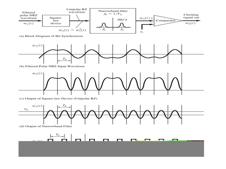 Bit Synchronization To accurately detect received signals, synchronization timing is needed. - derived from received data - separate signal sent from source Synchronization - bit level - frame level - carrier level