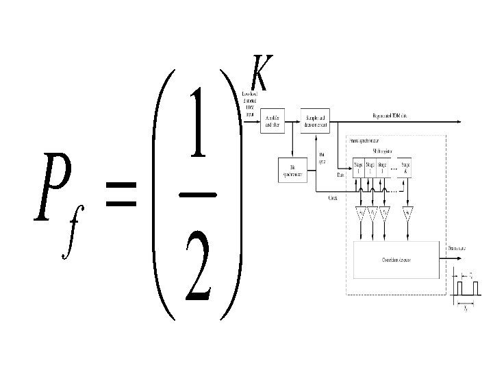 Frame Synchronization • Framing is done to delimit the boundaries of data units. (e. g. , 24 PCM samples collected from 24 difference sources, each corresponding to a voice sample) • The receiver sees a continuous stream of symbols (for binary signals, 1’s and 0’s). • How does the receiver know, for example, where the different PCM samples are? Certain unique string of bits is used to indicate the boundaries of frames. • The channel data may contain the bit patterns that happen to be identical to the framing bit string. Certain bit stuffing and de-stuffing methods are necessary to avoid such situations. • Probability of any arbitrary bit string matching a K bit framing string: