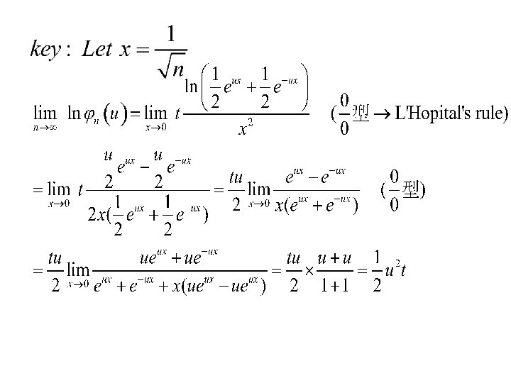 求 的極限分配 (3. 2. 15 ) • To identify the distribution of this r. v. as