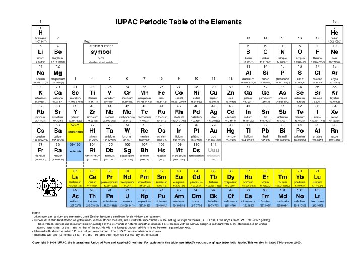 Section 3. 2 Periodic Table (1) Classic exemplar of the scientific process: Mendeleev (2) Atomic mass and atomic number as atom identifiers (3) Periodic properties along rows and down columns (4) Electronegativity (ability of an atom to hold electrons) (5) Chemical reactivity (kinds of reactions atoms undergo) (6) Valence (the number of bonds to other atoms) (7) (4) Underlying structure of the Periodic Table is the