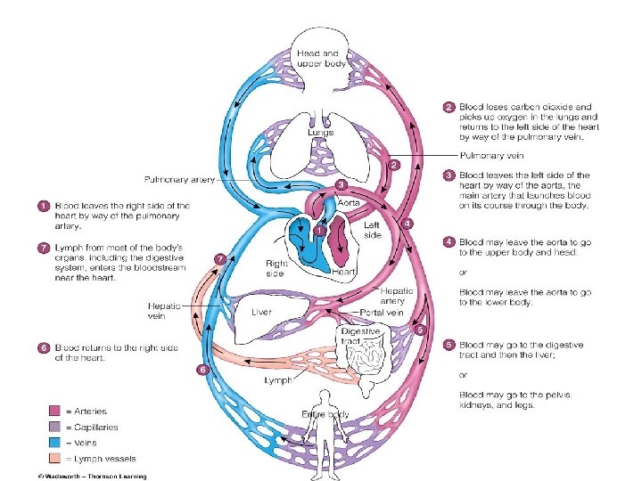 Absorption & Transport • Absorbed nutrients enter either the: 1. Vascular system – water-soluble nutrients (monosaccharides, amino acids, water-soluble vitamins, minerals, water) enter the blood via the portal vein for transport to the liver