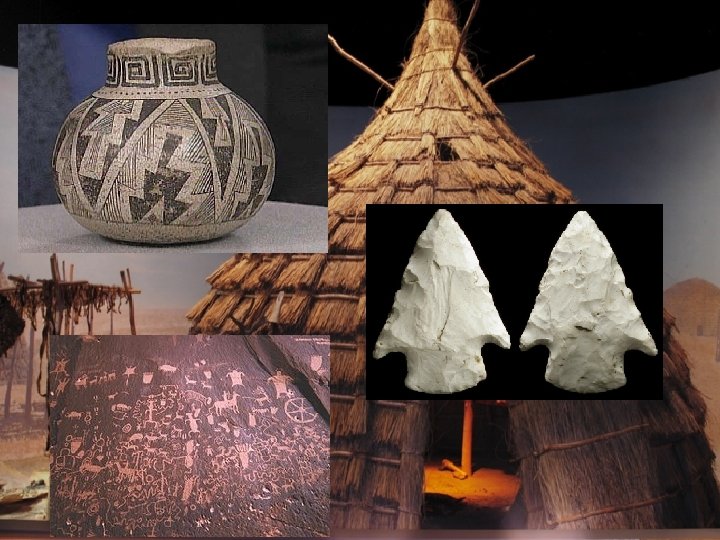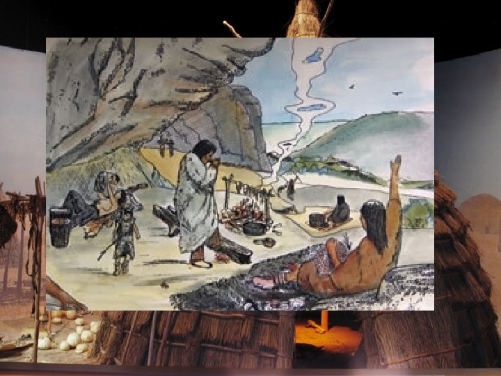 c. The Forager people may have been used shelters with pole frames to live in as they hunted in their areas. Some in northeastern Oklahoma used natural caves and bluff overhangs along the rivers as their shelter. d. The people ate buffalo, deer, antelope, elk, jack rabbit, cotton tail, coyote, wildcat, badger, eagle, wild turkey, and mice. They mixed ground pinon nuts with wild plums and berries to make round flat cakes similar to a doughnut. They knew how to start a fire with a wood drill. They made bags from prairie dog skins, sandals of yucca leaves with soles of cedar bark, colorful mats, rugs, baskets, and cradles.