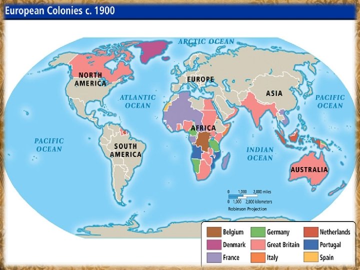 The European view of the rest of the world n Europeans believed that they were culturally and politically superior, therefore they had every right to control the people and resources of these new lands. n The indigenous people were not considered as equals. n Belief that one’s own race and culture was superior to those people of other societies is known as enthnocentrism