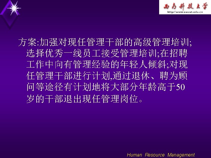 (2)defining the skills, expertise, and total number of employees required to achieve the organizational and departmental objectives; Ø Ø Managerial estimates Delphi technique Scenario analysis Benchmarking Human Resource Management