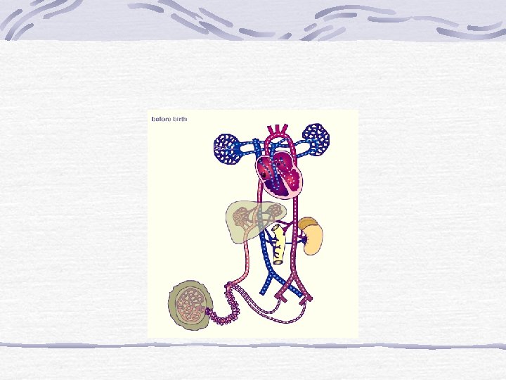The first system to function is the cardiovascular. The blood vessels formation begins early in the third week. Heart start to pump blood at 4 th weeks. Fetal heart rate: 120 -160 beat per minute. Fetal circulation: the single umbilical vein carries oxygenated blood from the placenta. The paired umbilical arteries return most of the mixed blood from the fetus to the placenta. The lungs begin to growth as a part from upper digestive tract at 4 th weeks not functional until after birth. A substance called surfactant forms in the lungs at 27 th week. Alimentary tract is formed at 4 th week but function not accomplished before delivery. The kidneys develop rapidly at 5 th week and begin to function and passing urine at 8 th week.