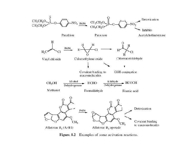 Toxication versus Detoxication The cytochrome P 450 monooxygenases (CYP) are by far the most important enzymes involved in the oxidation of xenobiotics. This is because of the abundance of CYP (especially in the liver), the numerous isozymes of CYP, and the ability of CYP to be induced by xenobiotic compounds. Although the CYP enzymes are the most abundant in the liver, they are also present in other tissues including the skin, kidney, intestine, lung, placenta, and nasal mucosa. Because CYP exists as multiple isozymes with different substrate specificities, the presence or absence of a particular CYP isozyme may contribute to tissue-specific toxicities. Many drugs and other foreign compounds are known to induce one or more of the CYP isozymes, resulting in an increase, decrease, or an alteration in the metabolic pathway of chemicals metabolized by the CYP isozymes Toxicology - involved. Chaper 4 9