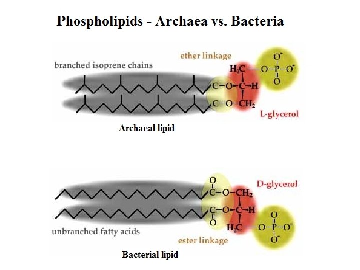 Differences Between the Archaea and the Bacteria 1. Cell Membrane Lipids – Fatty acids in bacterial lipids have straight chains, fatty acids in Archaea have branching chains. 2. Cell Wall Composition – Bacterial cell wall is made of peptidoglycan, Archaeal cell wall is made of other compounds. (pseudopeptidoglycan – lacks n-acetyl muramic acid) 3. RNA polymerase in Archaea is more like eukaryotic cells. DNA polymerase in Archaea is more like eukaryotic cells 4. Currently, there are no Archaea that are known to cause human disease, but there are more than 300 species of bacteria that are known to cause disease in humans