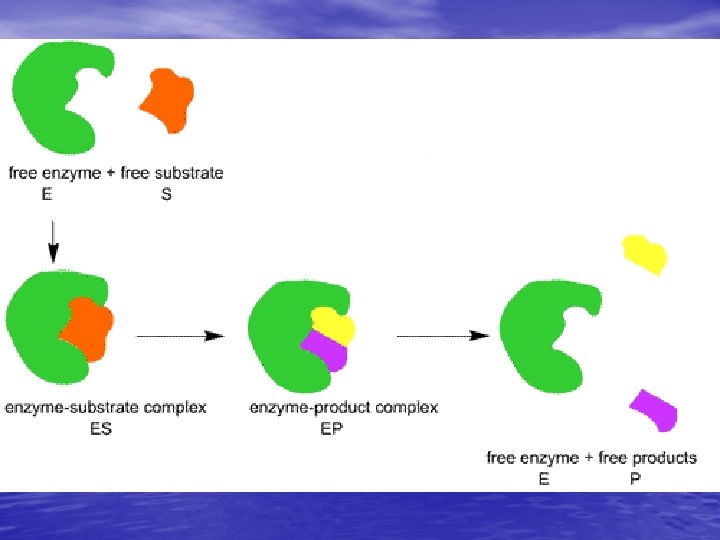 How do enzymes work? • Enzyme Molecule and its SUBSTRATE, the • • reactant being catalyzed The fit of enzymes on a substrate weakens some chemical bonds, which reduces the activation energy for the chemical reaction to occur then the enzyme is released & it’s unchanged, so it can be used many times