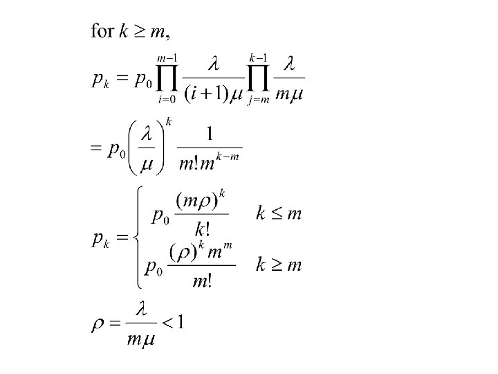 – P[queueing] – probability that no server is available in a system of m servers. Erlang’s C formula C(m, l/m)