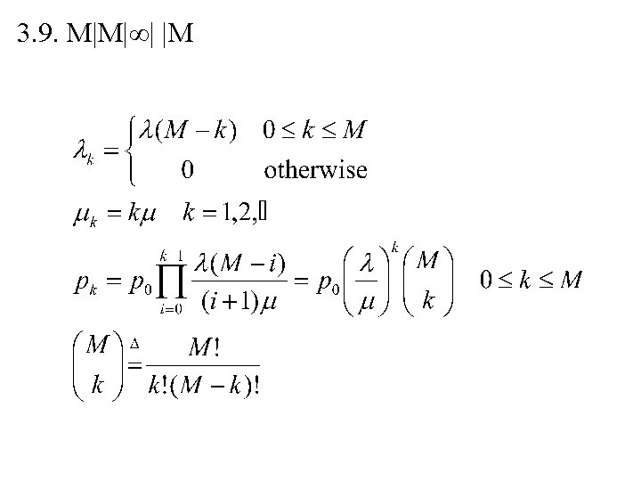3. Birth-Death Queuing Systems in Equilibrium Equations: Transient solution Solution in equilibrium can not be generalized