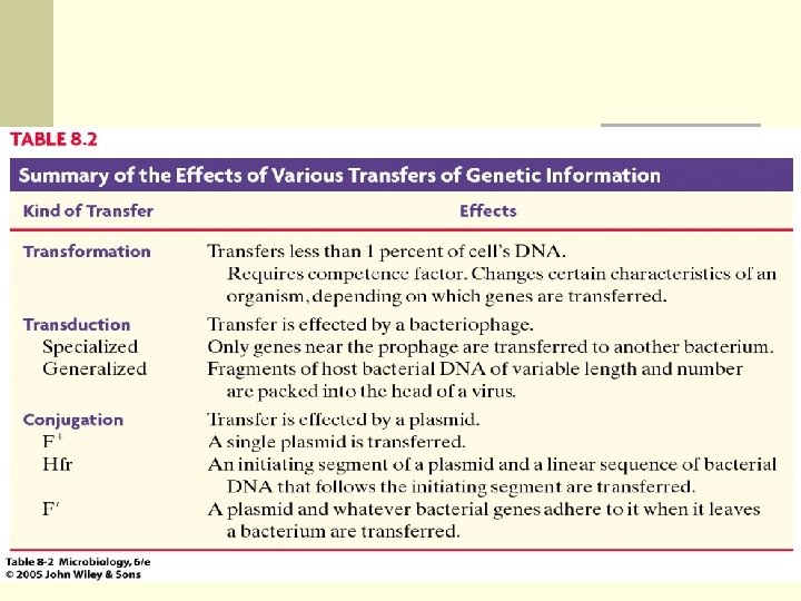 The F Factor in the Chromosome • A cell with the F factor built into its chromosomes functions as a donor during conjugation • The recipient becomes a recombinant bacterium, with DNA from two different cells • It is assumed that horizontal gene transfer is also important in archaea