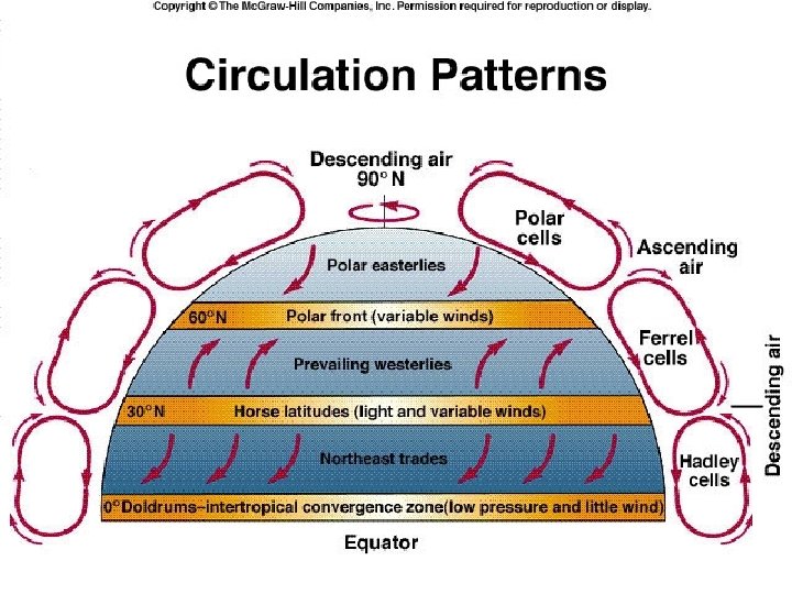3. 7 Earth's Energy Budget, Weather, and Climate • Wind cells – Intertropical convergence zone • Warm, humid air rises, then cools • Causes large amounts of rain – Air then moves toward poles – Forms convection cells flanking equator • Hadley cells © 2013 Pearson Education, Inc.