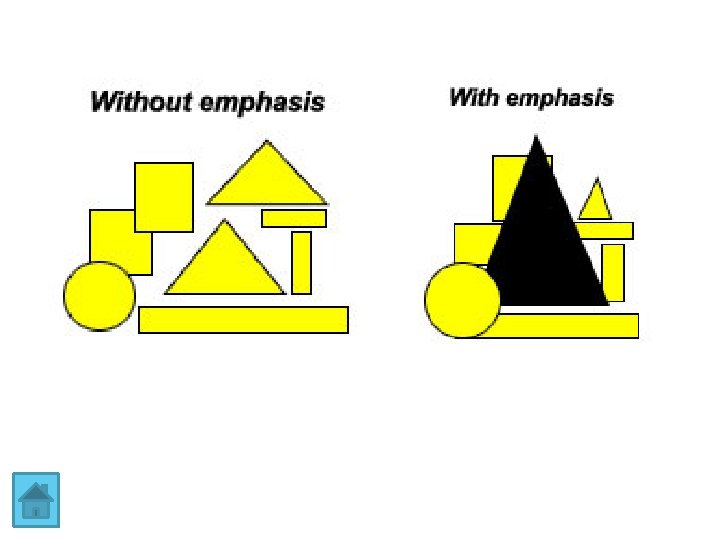 Ways to Achieve Emphasis: 1. Contrast Emphasis by contrast of Color (& size) Most visually dominant