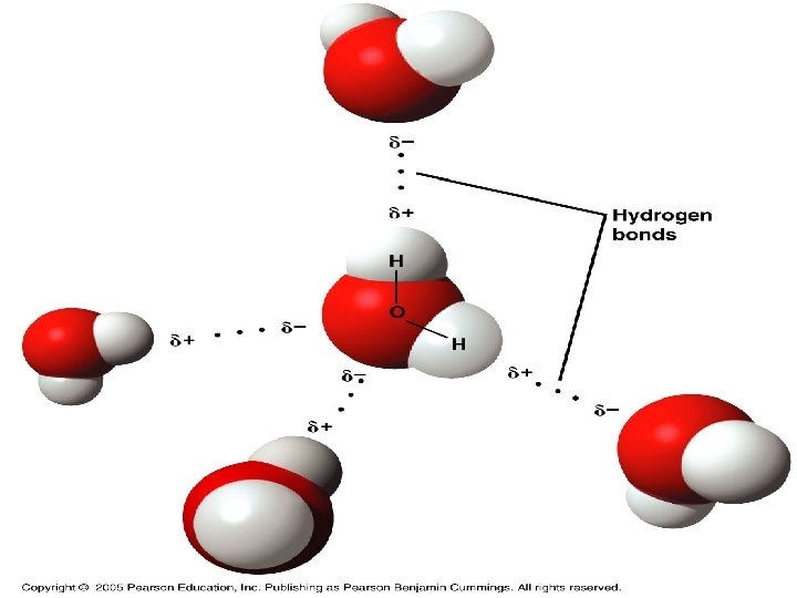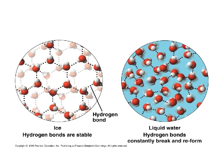States of water • Ice is less dense than liquid (10% at 4 o. C), due to hydrogen bonding. • The characteristic of ice being less dense than liquid provides continued life for aquatic habitats year round.