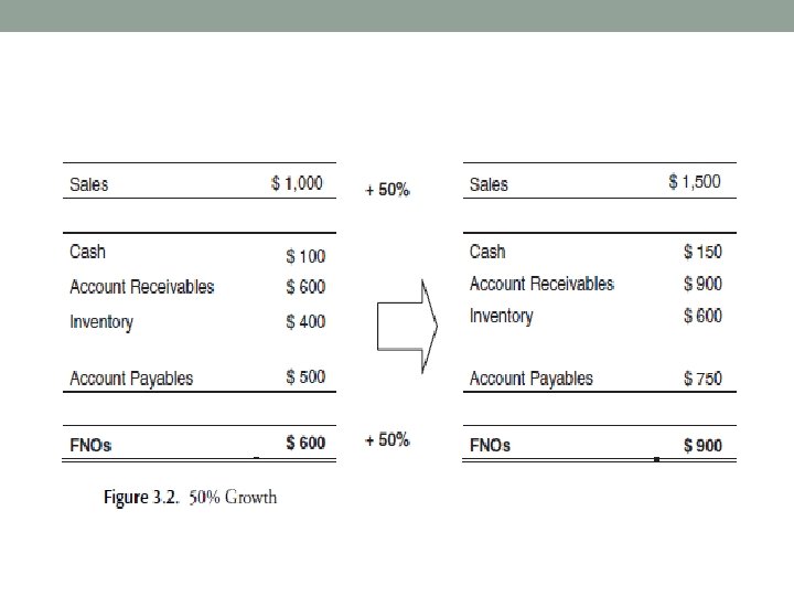 • Turning to financing from suppliers, given the volume and consequent market power characterizing some of these businesses (e. g. , Mc. Donalds), we can assume a pretty long payment period. • Taken together, and considering that these firms will likely have a few days’ cash on hand, we again have a class of firms that are likely to have zero or negative FNOs, that is, companies that are capable of self financing their growth. • Note that zero or negative FNOs may arise not just from patterns particular to a firm’s industry but also from a specific firm’s business strategy a strategy that may even break industry patterns.